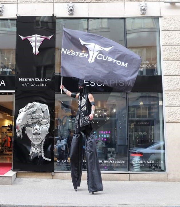 Individual covers for stilts comfortable with elastic band, special trousers for stilts, polyester, costume for stilts and circus performers.